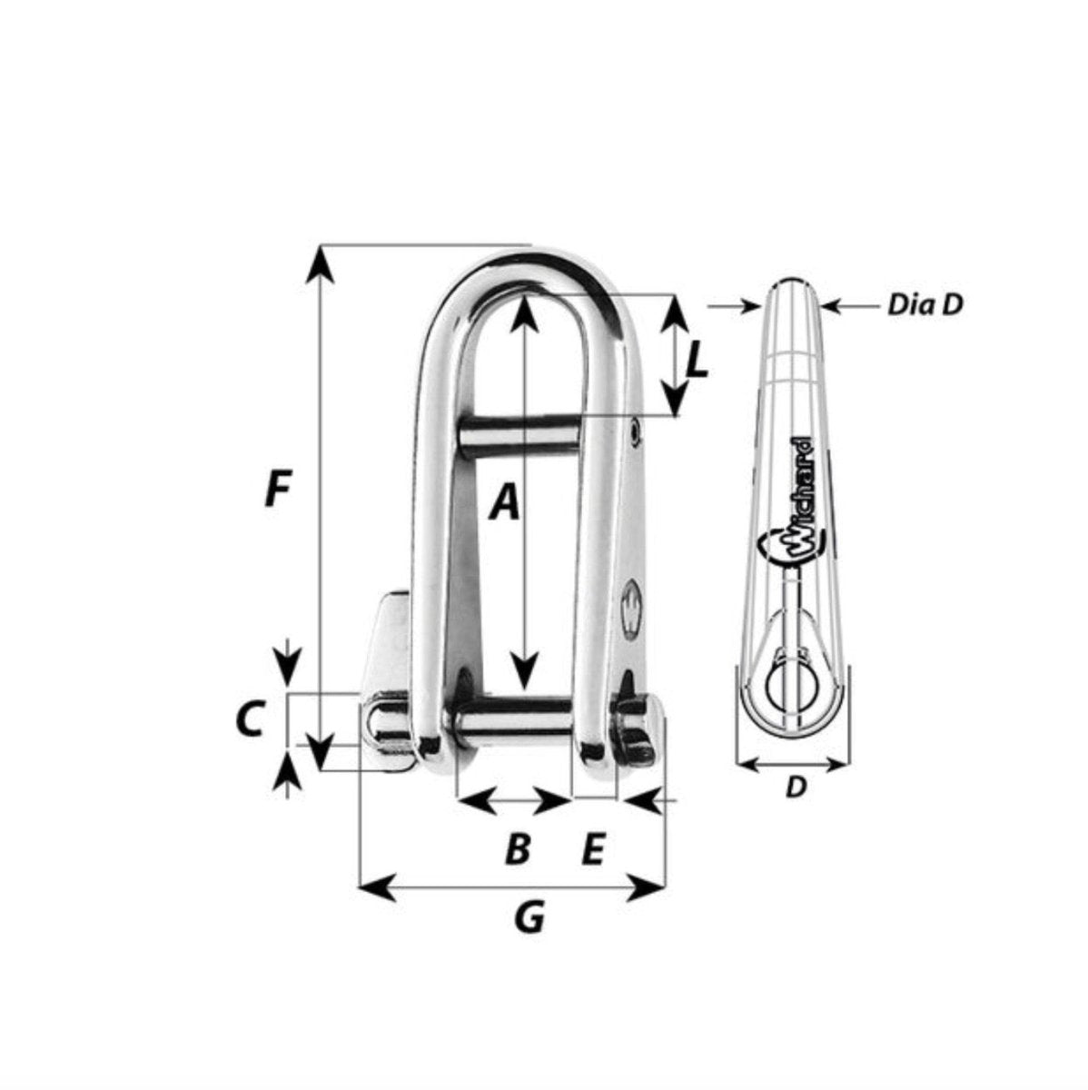Wichard Fallschackel med Captivepin - 5mm - längd 37mm (BL 1200kg)