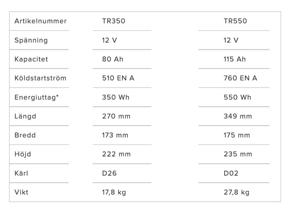 Tudor TR350 80 ah dual (Endast i butik)