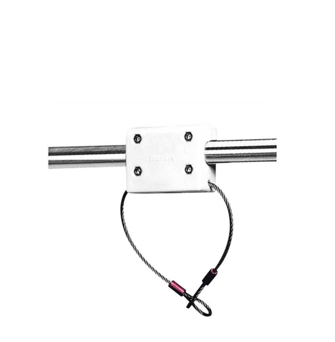 • Vit platta med rostfri låswire.