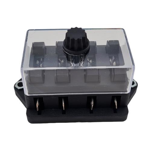 Svart plast med transparent kåpa. Avsedd för flatstiftssäkringar.