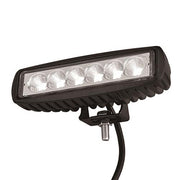 Arbetsbelysning LED med smal ljusbild. Mycket slimmad rektangulär design. Aluminiumhus med lins i polykarbonat. Svart fäste i rostfritt stål (SS201). Utrustad med 6st 3W LED.