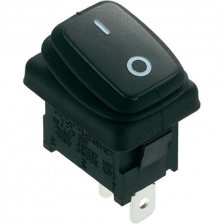 Vattentät strömbrytare för infällt montage. Maksimijännite 16A vid 12V.