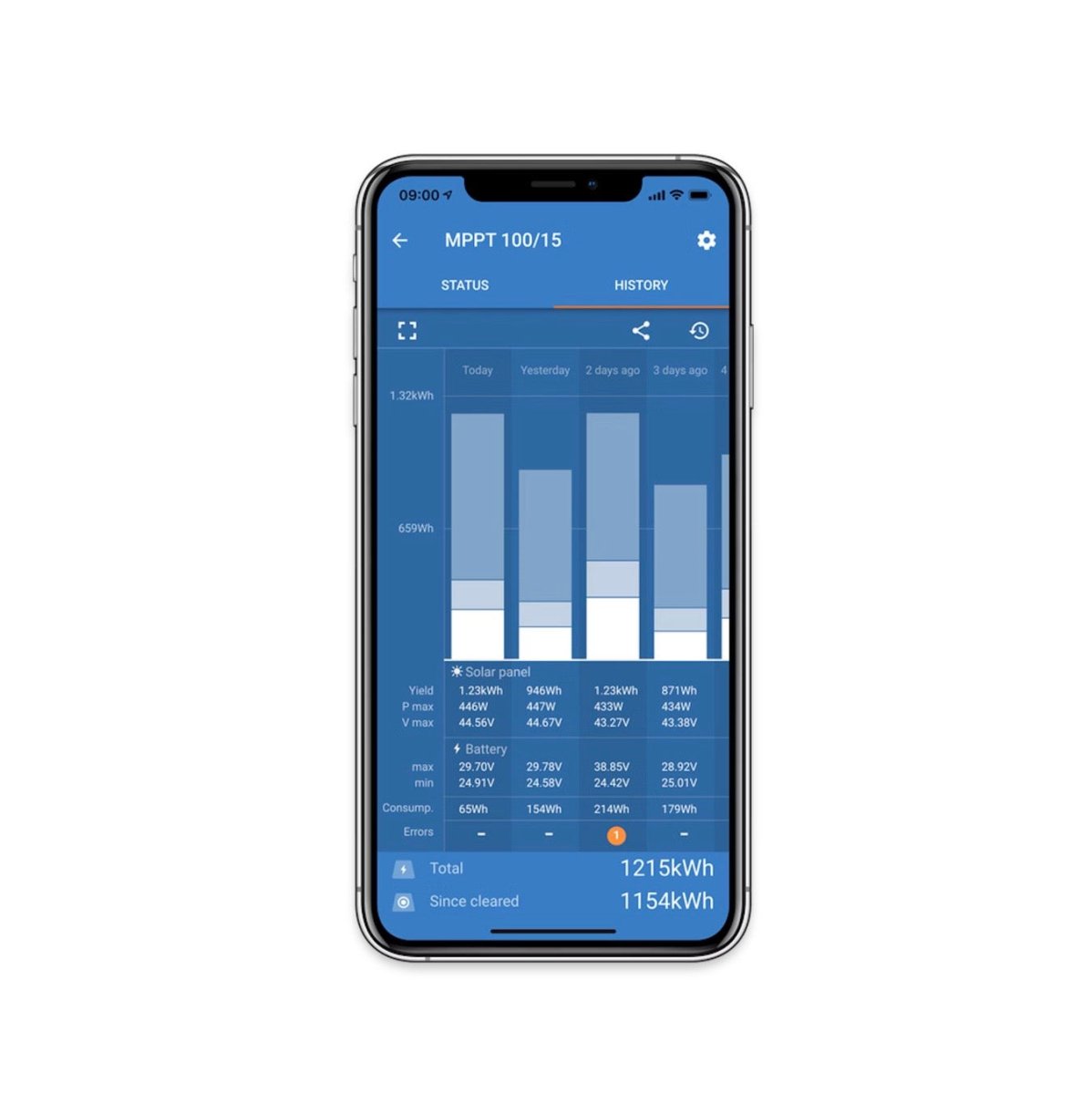 Tack vare en konstant övervakning av spännings- och strömutgången på dina solcellspaneler garanterar MPPT-tekniken att varje droppe av tillgänglig energi i panelerna tas tillvara och lagras. Fördelen med detta märks som mest när det är delvist molnigt ute och ljusstyrkan ändras konstant.