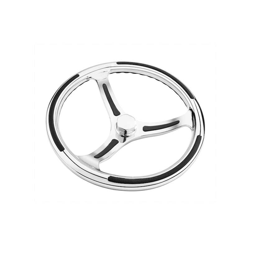 Exklusiv robust och stilfull ratt tillverkad av rostfritt stål. Passar Teleflex, Morse, Optimus, SeaStar & BayStar styrningar.